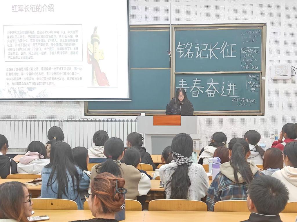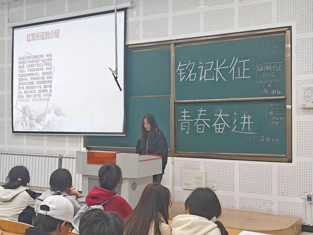 为了传承长征精神,激励广大同学在新时代奋发向前,培养同学们爱国、团结、奉献等积极向上的价值观。太阳成集团tyc7111于10月22日在教学南楼114教室开展了“铭记长征,青春奋进”主题团日活动。学生会全体成员参加此次活动。