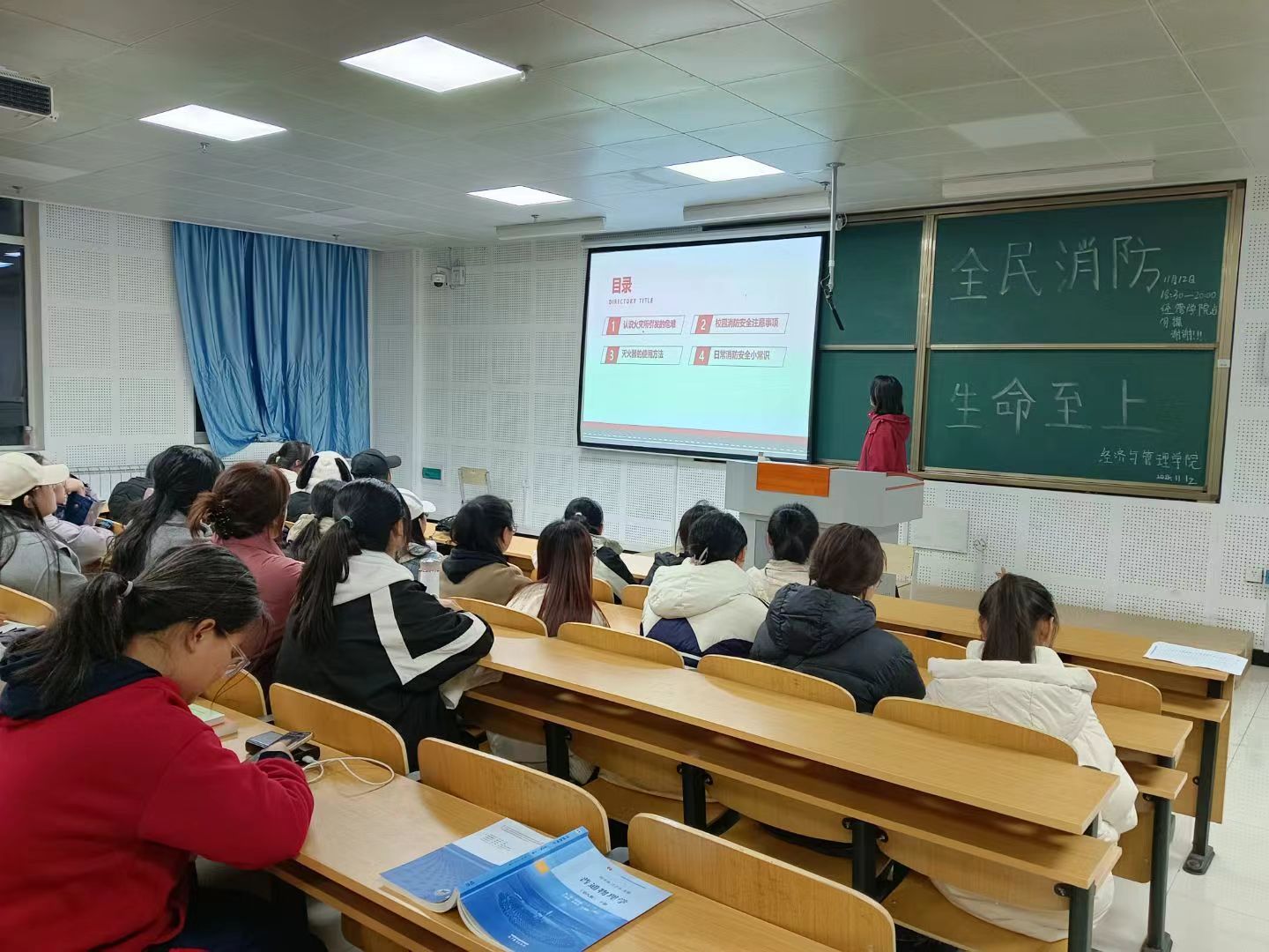 为增强学生们的消防安全意识,普及消防安全知识,提升应对火灾等突发事件的能力,确保学生们的生命财产安全,营造安全、稳定、和谐的校园环境。太阳成集团tyc7111于11月12日在教学南楼316教室组织开展了“全民消防,生命至上”主题团日活动,学生会全体成员参加此次活动。