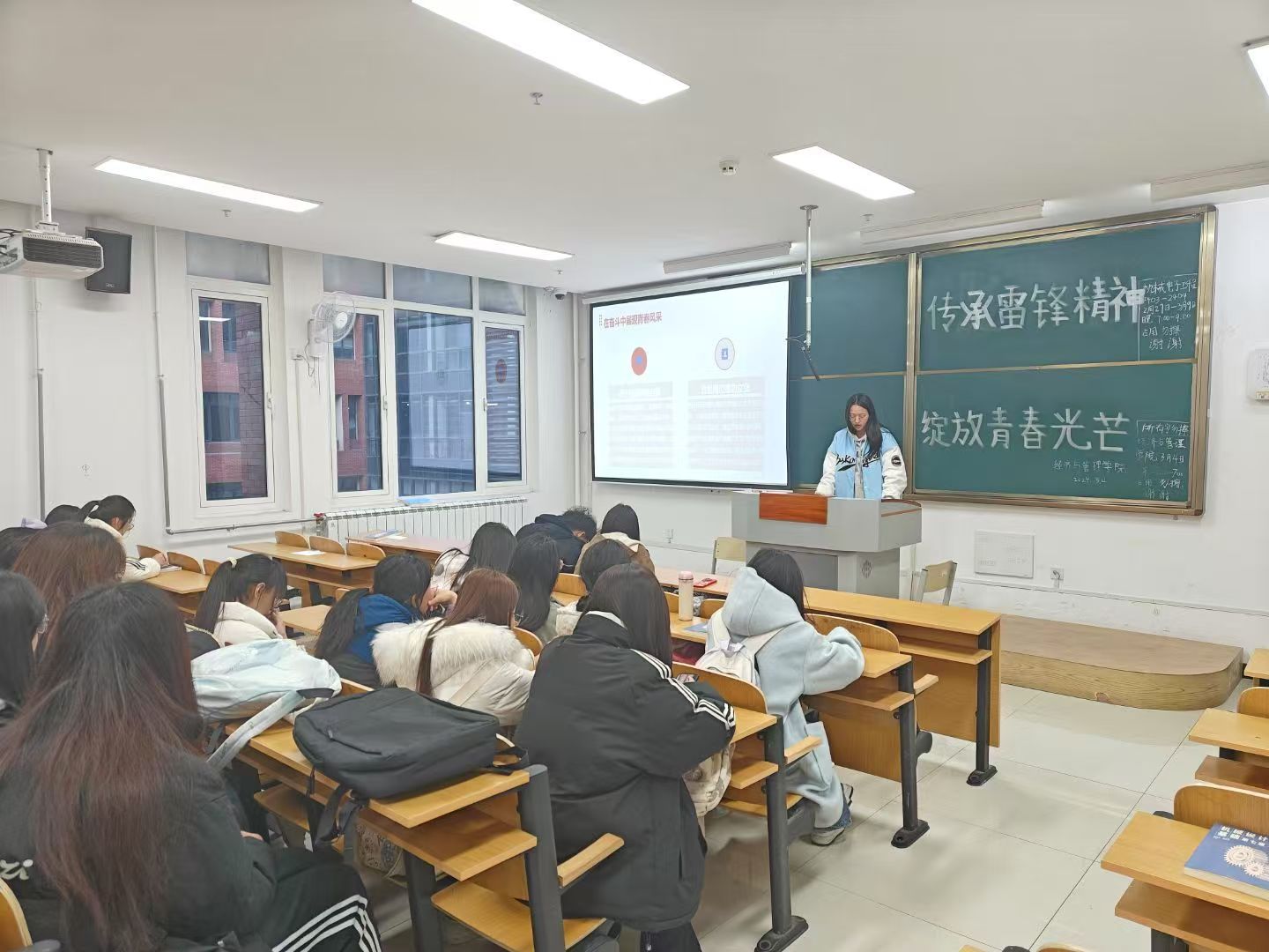 活动伊始,学生代表通过讲解PPT的形式,介绍了雷锋同志的生平事迹,将大家带回那个充满热血与奉献的年代。同学们专心听讲,对雷锋精神有了深刻的认识。随后,学生代表结合当下时代背景,深入浅出地阐述了雷锋精神在新时代的深刻内涵。在科技飞速发展的今天,雷锋精神以新的形式融入生活,从网络上的爱心募捐到抗疫一线的无私坚守,从基层岗位的默默耕耘到志愿服务的热情奉献,雷锋精神从未缺席,反而历久弥新。最后,同学们纷纷表示要将雷锋精神融入日常,化作点滴行动,用青春的热情去传递温暖,用实际行动践行社会主义核心价值观,在新时代的广阔天地中书写属于自己的雷锋篇章。