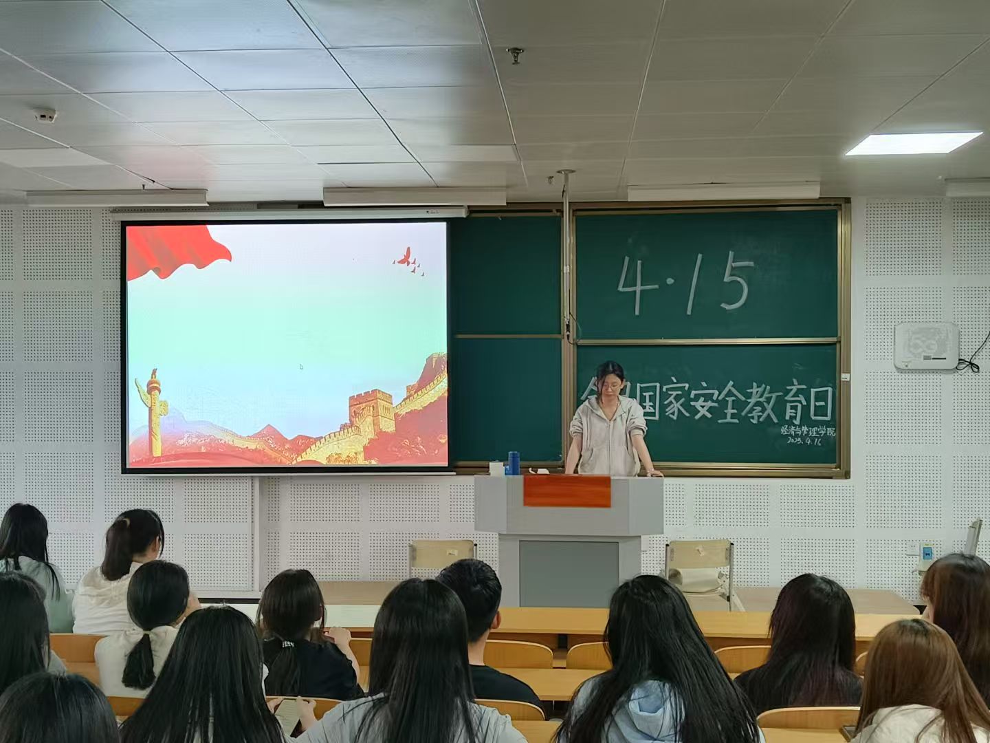 活动伊始,学生代表以讲解PPT的形式,介绍全民国家安全教育日的基本信息,使同学们对全民国家安全教育日有基本的了解。随后,学生代表结合当下,深入浅出地阐述了国家安全的丰富内涵,包括政治安全、国土安全、军事安全、经济安全等多个关键领域,并结合典型案例,剖析危害国家安全行为带来的严重后果,并论述维护国家安全的重要意义。最后,同学们纷纷表示,将以此次主题团日为契机,主动学习国家安全知识,提高风险防范能力,在网络信息、涉外交往等场景中保持警惕,真正将“国家安全,人人有责”的理念融入日常行动。