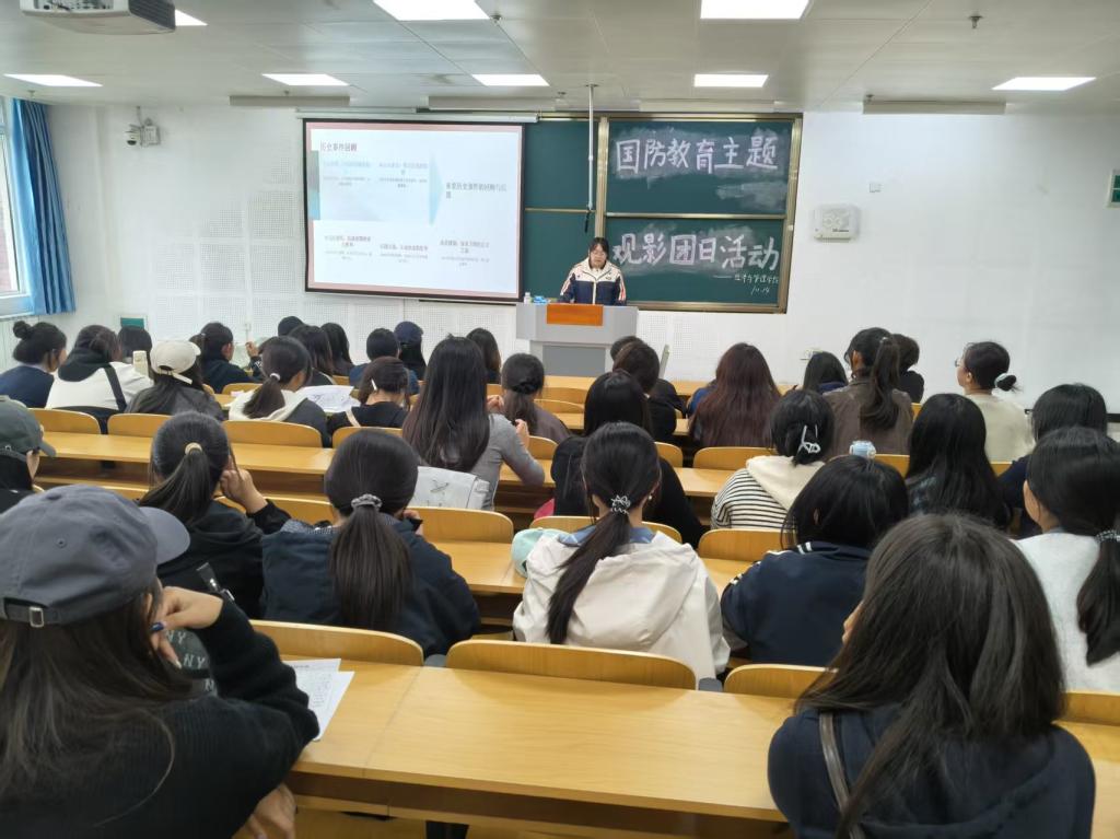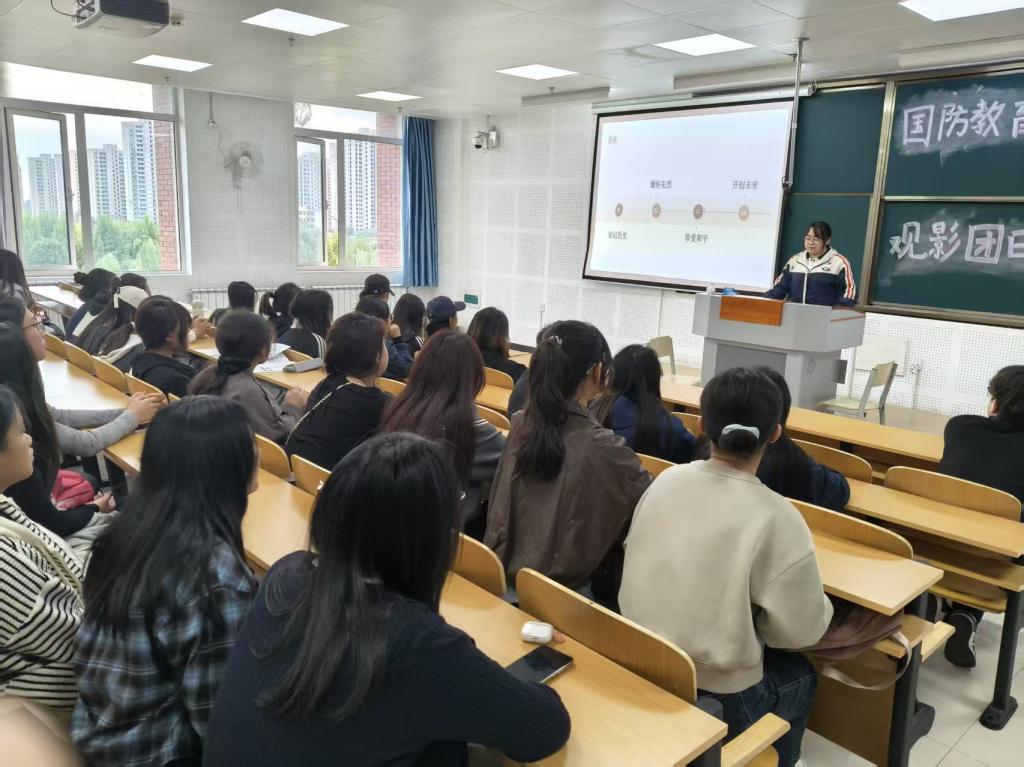 活动伊始,学生代表通过讲解PPT的形式,聚焦不同时期国防建设历程,通过鲜活的故事与震撼的画面,展现国防力量的重要意义与革命先辈、当代军人高尚的使命与担当。随后,在学生代表的进一步讲解下,同学们全神贯注,被英雄事例中传递的忠诚无畏、坚毅奉献精神深深触动,深刻体会到“国无防不立,民无防不安”的内涵,进一步认识到国防建设对国家发展、人民幸福的重要性。最后,同学们结合自身认知踊跃发言,纷纷表示将把观影感悟转化为行动自觉,从日常学习生活做起,主动关注国防动态,增强自身责任感与使命感。