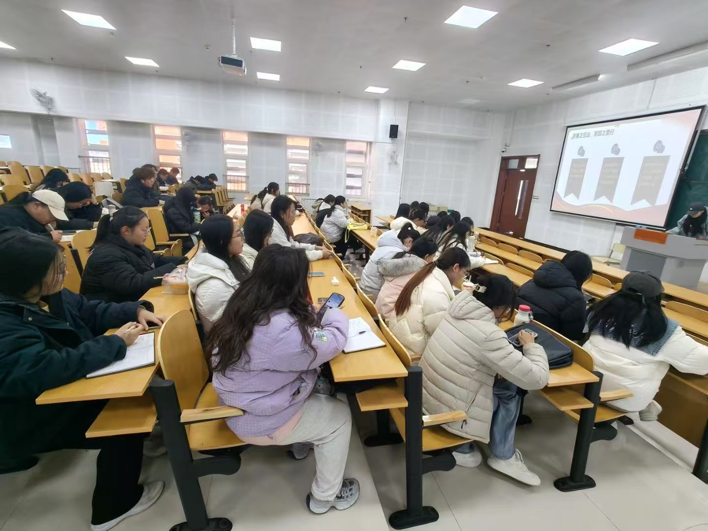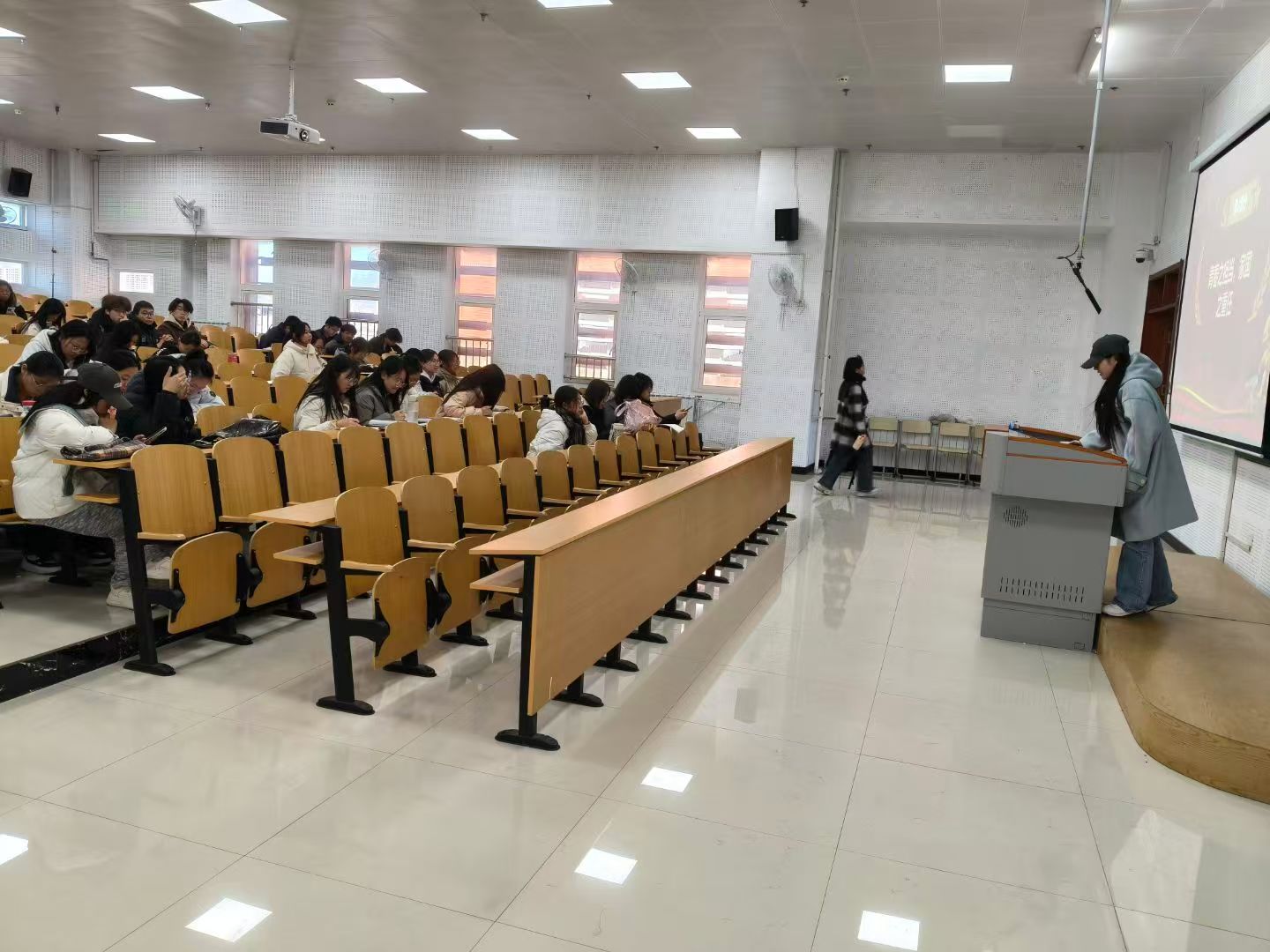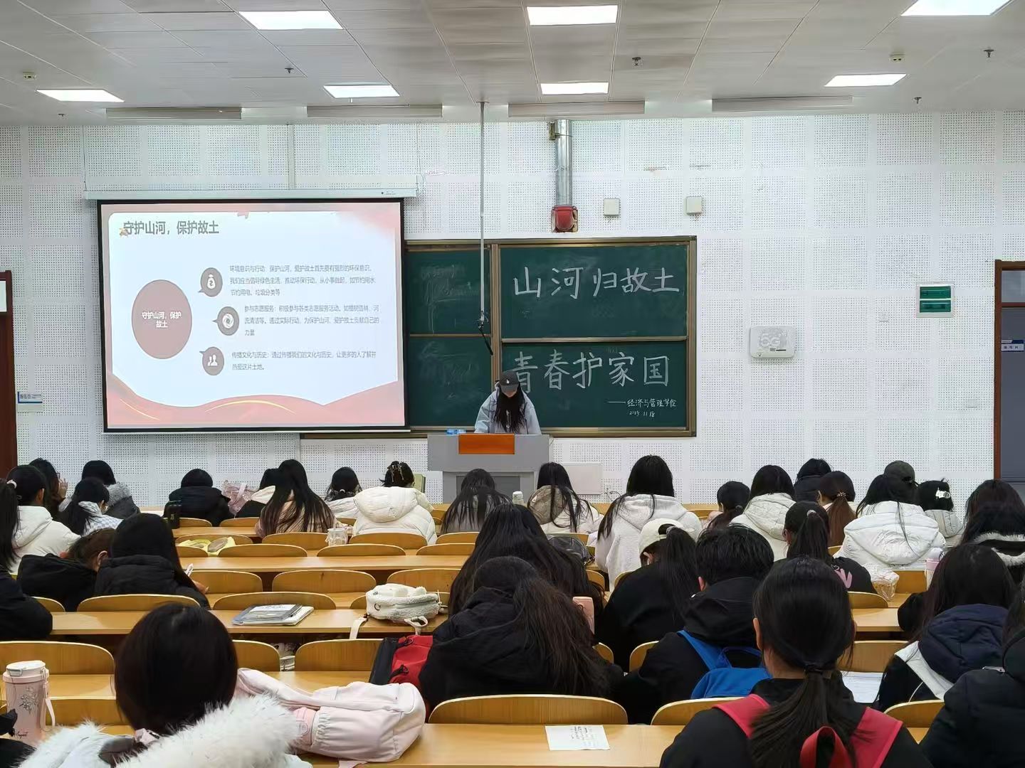 活动伊始,学生代表通过讲解PPT的形式,结合历史文献、老照片与纪录片片段,带领同学们回溯从边疆戍守到文物保护、从生态守护到故土建设的历程,生动讲述了历代青年守护山河、扎根故土的感人故事,让同学们深刻体会“山河归故土”的历史意义与“青春护家国”的时代责任。随后,围绕“新时代青年如何以行动守护山河故土”,同学们展开热烈讨论。最后,大家纷纷表示将立足专业学习,关注乡村振兴、生态保护等领域,以实际行动为守护家国山河、建设美好故土贡献青春力量。