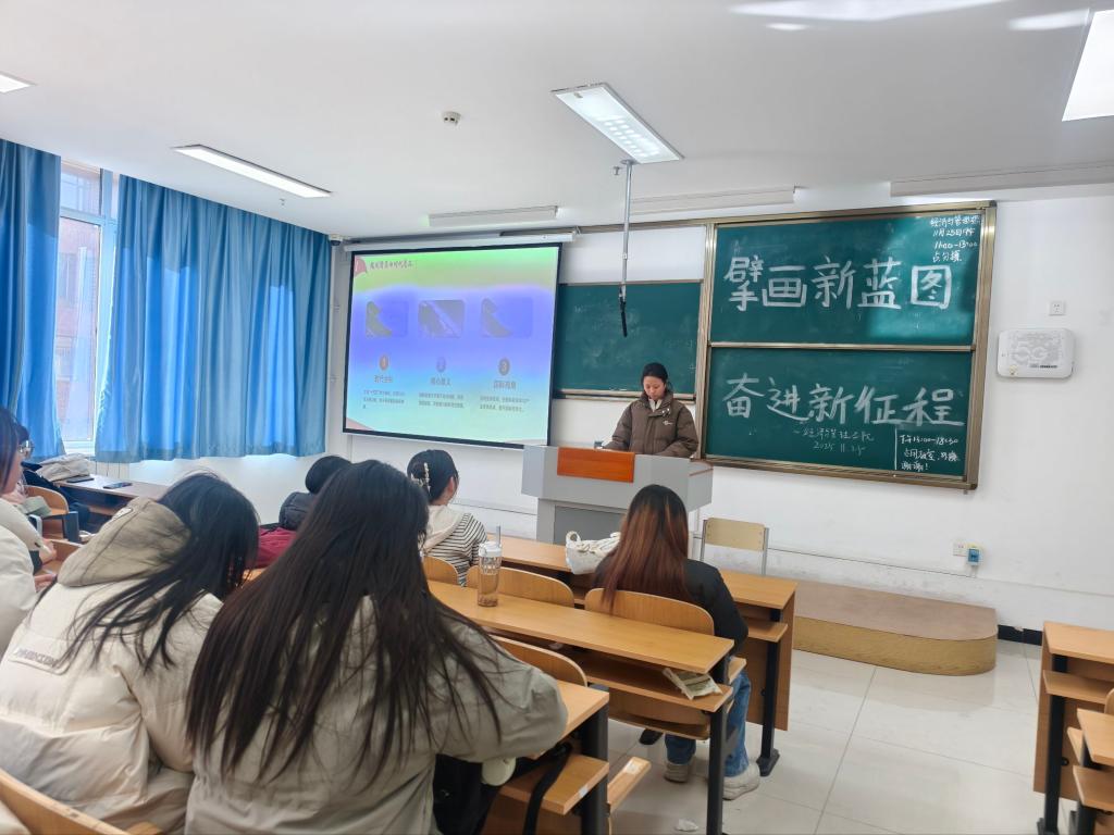 活动伊始,学生代表通过讲解PPT的形式,围绕“新征程下青年的使命与机遇”展开交流:从国家发展的战略蓝图,到经管学科在产业升级、数字经济中的实践价值,层层梳理新时代青年的成长坐标系;随后,大家结合专业特点,探讨“如何以专业能力服务发展大局”,从“商科思维助力乡村振兴”到“数据分析赋能企业创新”,把宏大蓝图拆解为具体的学习与实践方向。最后,同学们纷纷表示,将以此次团日为契机,把个人成长融入时代发展,在专业学习中锤炼本领,在实践历练中积蓄力量,以青年之朝气、奋进之姿态,共同擘画属于新一代的发展新蓝图。