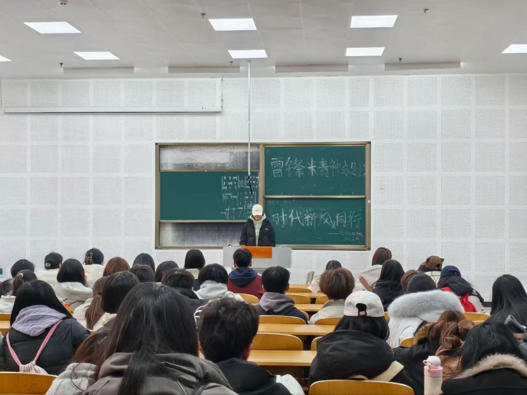 活动伊始,学生代表通过讲解PPT的形式,以详实的历史资料与珍贵的影像图片,带领同学们穿越时光长河,回顾雷锋同志的生平事迹。从雷锋同志的成长经历,到他爱岗敬业、助人为乐的点滴故事,层层递进地展现雷锋精神的核心内涵。随后,学生代表通过生动地讲解,将雷锋精神从个人的道德实践,迅速延伸至新时代青年的责任担当,阐述雷锋精神在当代的传承与发展的过程娓娓道来。最后,同学们纷纷表示,在今后的学习生活中,将以雷锋同志为榜样,传承和弘扬雷锋精神,把奉献之情转化为实际行动,努力学习专业知识,提升自身本领,以青年之担当,在新时代的征程中贡献青春力量。