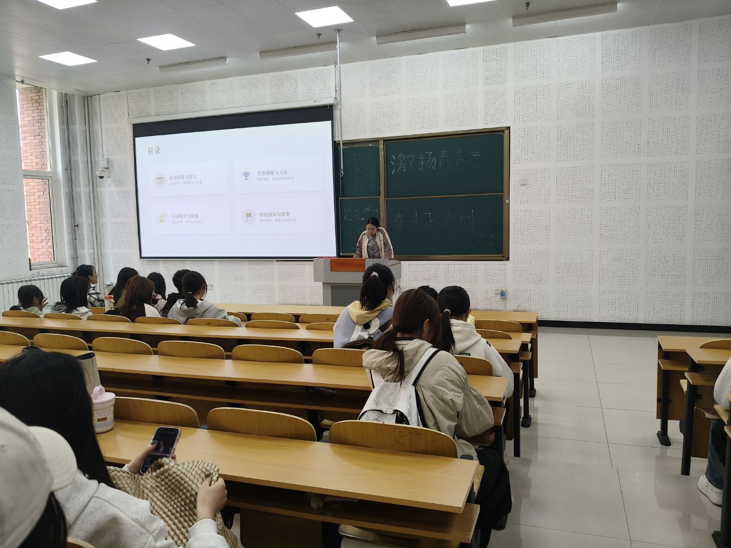 活动伊始,学生代表通过讲解PPT的形式,以详实的青春成长故事与鲜活的榜样案例,带领同学们梳理青年奋斗的成长脉络。从青年学子的学业攻坚、实践探索,到校园创新创业的鲜活案例,层层递进展现青春奋斗的多元路径。随后,学生代表通过生动分享,将青年在专业学习、社会实践中拼搏进取的经历娓娓道来,展现经管学子昂扬向上的精神风貌。最后,同学们纷纷表示,在今后的学习生活中,将以身边榜样为引领,把青春奋斗融入日常,深耕专业知识、积极参与实践,以青年之朝气,在青春的征程中绽放绚丽光彩。