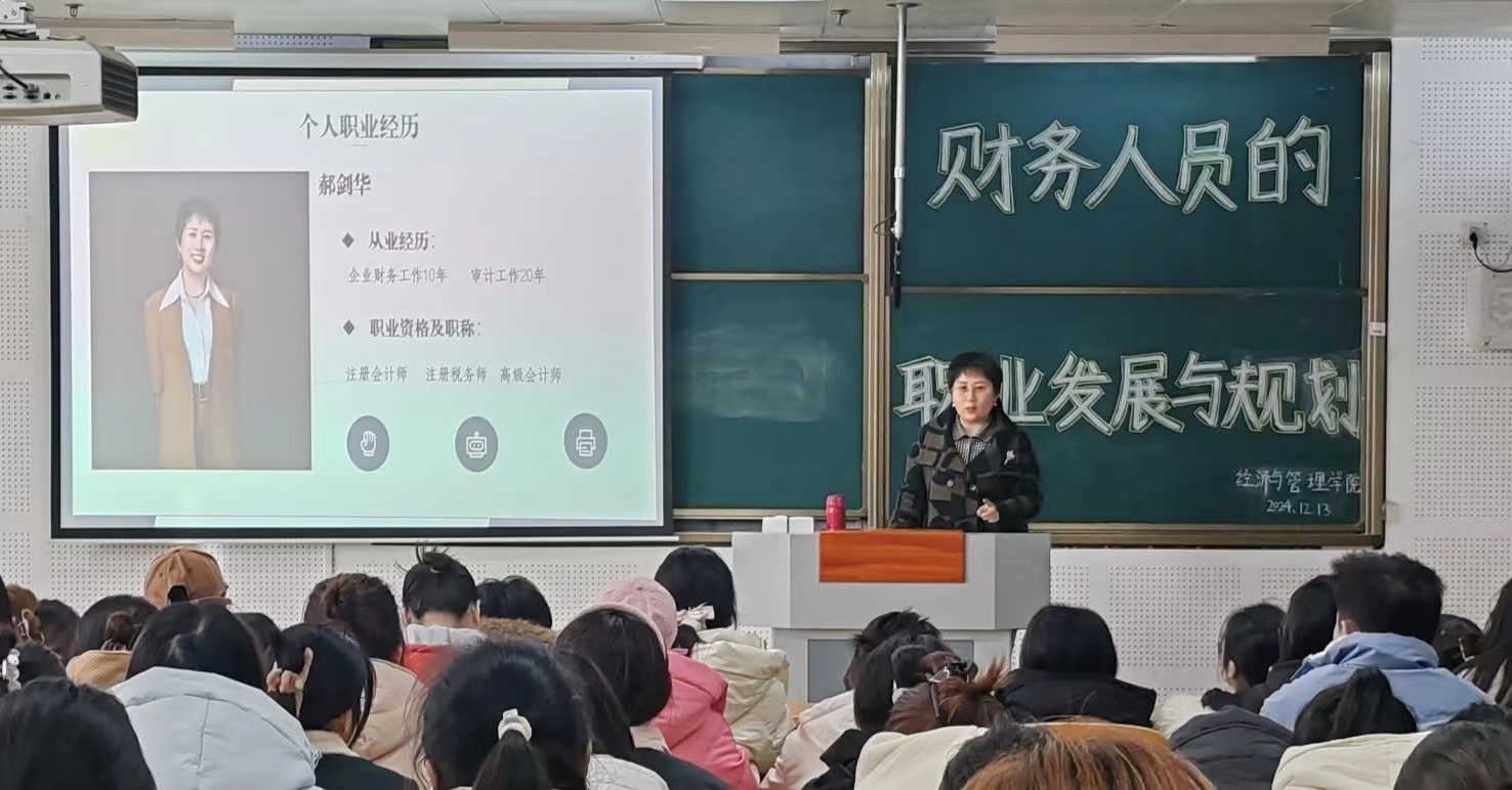 为了帮助同学们明晰职业发展方向,提升专业认知,增强就业竞争力,提高同学们的就业率,太阳成集团tyc7111于12月13日在教学南楼214教室展开了关于财务管理专业就业规划专题讲座。