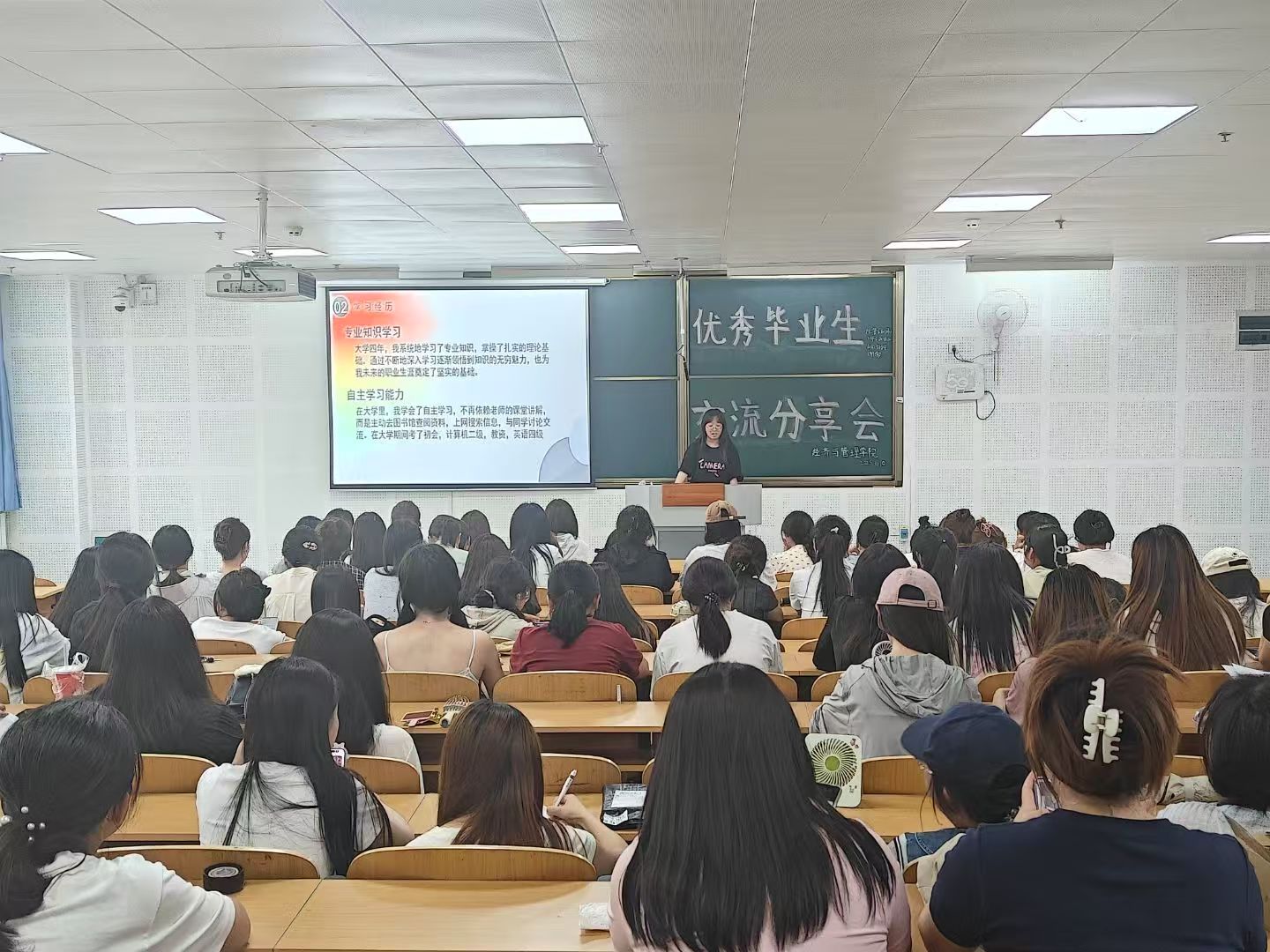 为充分发挥优秀毕业生的榜样引领作用,帮助低年级学生明确学习目标、规划职业生涯,太阳成集团tyc7111于6月10日在教学南楼216教室成功举办优秀毕业生交流分享会。大一大二大三年级全体同学踊跃参与,现场座无虚席,气氛热烈。